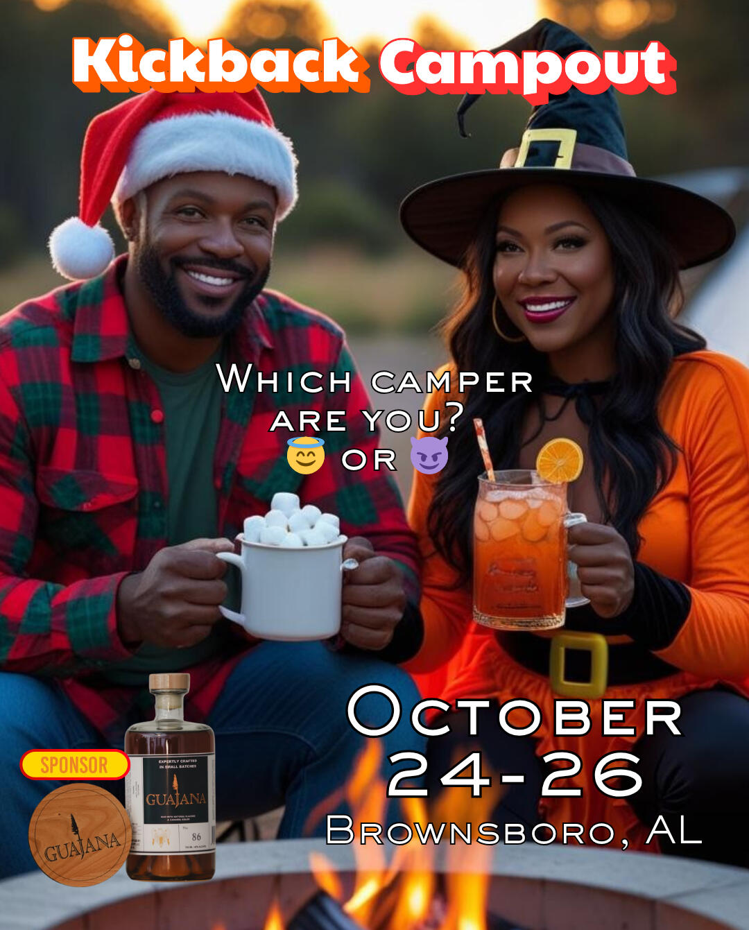 The Kickback Campout provides participants with an unparalleled outdoor experience, blending the electrifying atmosphere of a house party with the serenity of nature. Set amidst the enchanting woods of Northern Alabama, this event promises two days of non-stop fun, filled with live music, engaging games, delectable food, and a vibrant community of like-minded individuals. We combine the excitement of a live DJ, an open bar, and an array of activities with the tranquility of camping, the Kickback Campout offers a unique opportunity for attendees to unwind, connect, and create unforgettable memories.Join us for an immersive celebration, where music, tents, games, vibes, food, and great people converge to make this year's most unforgettable outdoor gathering. Don't miss out on securing your tickets for the event of the year!